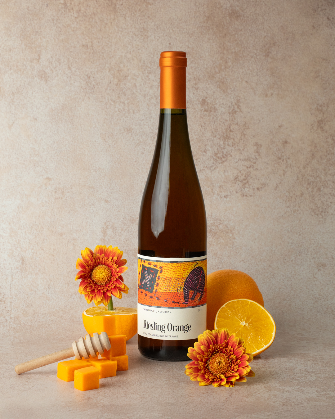 Riesling Orange 2024, nieco inna odsłona wina klasycznej odmiany Vitis vinifery, o intensywnej bursztynowej barwie, wyraziste i mocne w swej strukturze. Wyczuwalne aromaty herbaty, pigwy i ciemnego miodu, kształtują odmienne i niepowtarzalne wino, które swój styl osiąga dzięki jednoczesnej maceracji gron i fermentacji. Wino, które wzbogaci smak pikantnych dań, wyrazistych serów i wędliny, a także skomponuje się z tłustszymi mięsami, takimi jak jagnięcina, czy dziczyzna